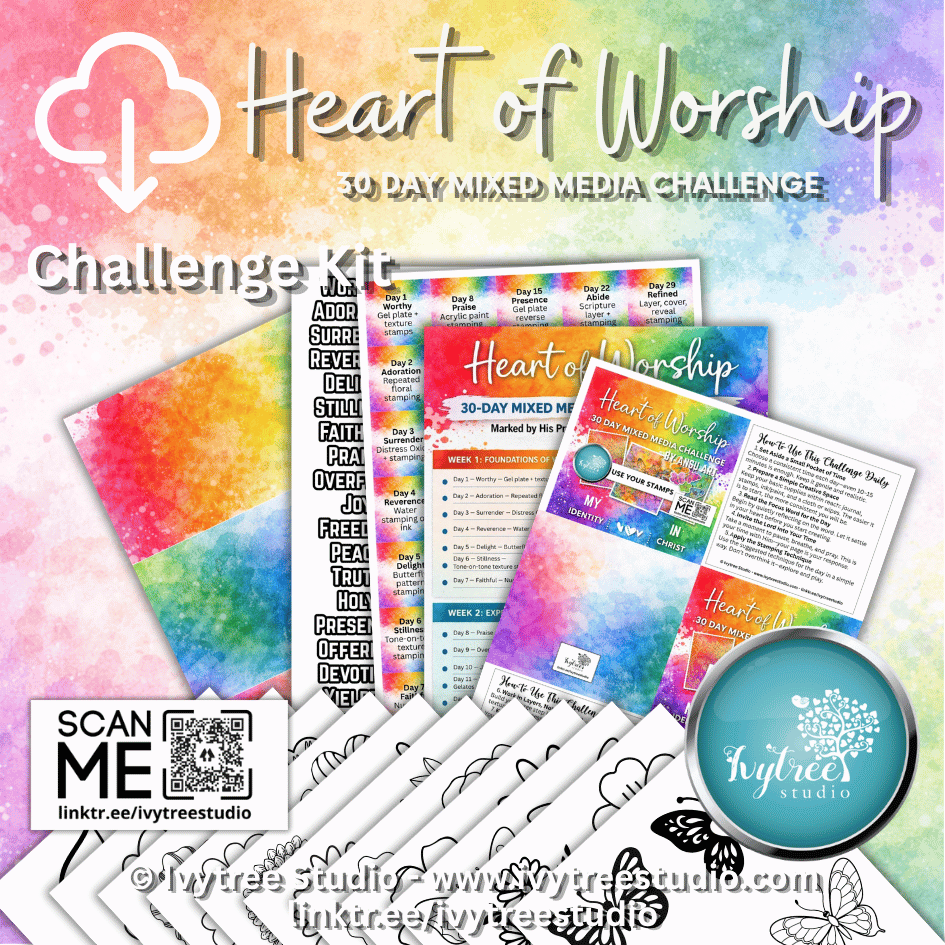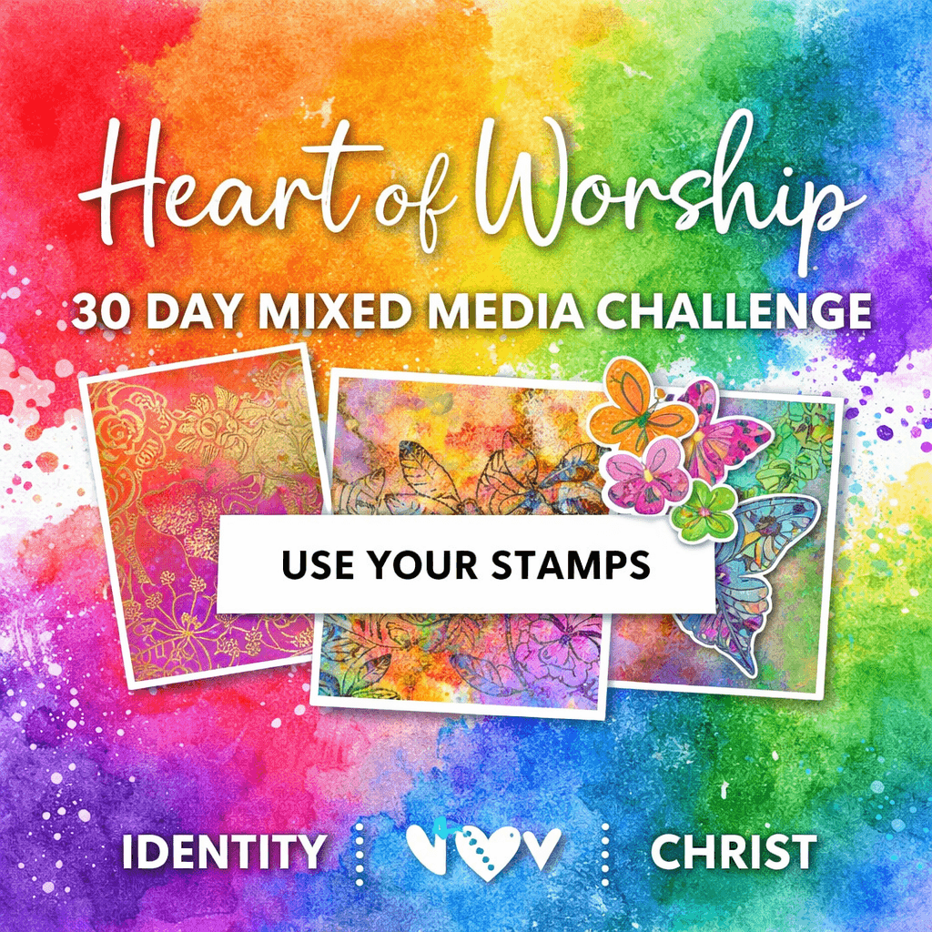 The Heart of Worship Challenge is a 30-day journey designed to help you use what you already have—your stamps, your journal, your time—and turn it into a simple, meaningful rhythm of creating with God.